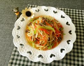土豆丝和胡萝卜丝不要炒太长时间,以免影响其香脆的口感