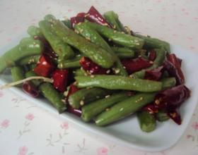 锅内放较多食用油,烧热,将四季豆炸至变软。