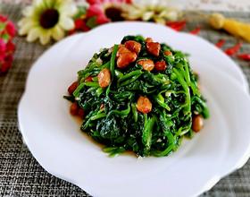 花生米炸制要小火,菠菜焯水稍微过下水即可,不可时间太长
