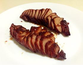 腌肉的汁子中加点食用油,中间给肉刷几次腌肉的汁子和蜂蜜,220度烤大约一个小时。