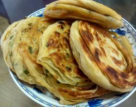 把饼卷好后在表层刷一层油,再擀薄点,尤其是中间,这样容易煎熟,层次感更好。