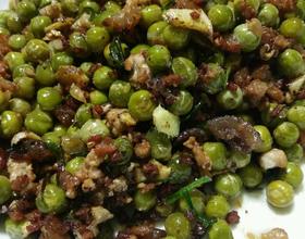 把炒好的肉末乘出锅后单独炒豌豆(放油炒,不是清炒)