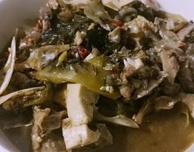 鱼头煎好后加适量水盖锅煮,待沸腾后依次加入酸菜、豆腐。加适量盐、酱油,继续煮。鱼汤变得浓稠后调小火煮3到5分钟,加生抽起锅。