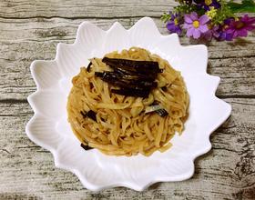 面条煮熟过凉水捞出沥干水分放在盆中备用