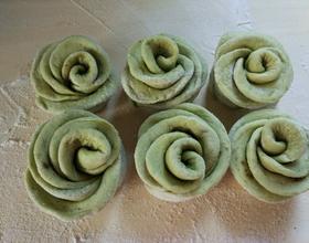 - 3. 面粉里加入酵母和菠菜搅拌均匀,和成面团