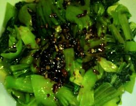 接着在锅中放适量油,再放蒜末、蚝油、酱油调成蚝油汁,淋在芥菜上即可