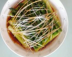 把芦笋洗净,切段,部分去皮(如果芦笋嫩就不用去皮)