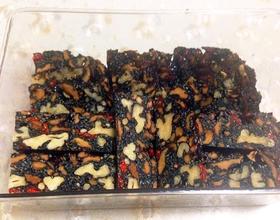 - 3. 阿胶熬制挂旗就可以加事先准备好的红枣肉,炒制好的核桃和黑芝麻。一定要大力搅拌,这部妹纸们可以请老公或者老爸来帮忙~搅拌均匀盛出。