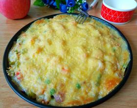 - 6. 加入圆葱青椒西红柿,加盐胡椒粉炒香