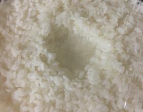 糯米舖平中間扣坑,灑上剩下的酒麴