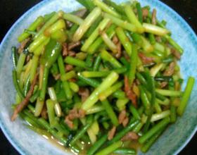最后蒜台放入撒点盐鸡精爆炒入味即可出锅