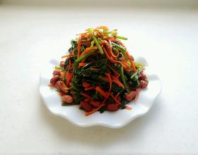 - 11. 取一个干净的容器,并把胡萝卜丝和菠菜还有所以调料放进去。搅拌均匀即可装盘。