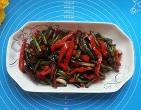 一般来说 我会先炸豆角 后炸茄子 因为茄子是给多少油都能吃下去的主儿 还有就是我的调汁比例 2份耗油1份生抽 白糖少许 加点水或者水淀粉和匀即可还有就是豆角一定要熟透哦