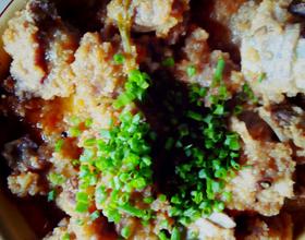腌制好后放入蒸肉粉搅拌均匀,就可以上锅蒸了,蒸到排骨变色,传出香味就熟了