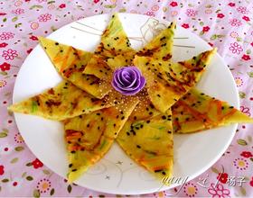 - 9. 这是煎好的蛋饼,亲们细看色拉油还在饼上美的冒泡呢^_^……不想太过油腻也可用厨房纸巾吸干表油层