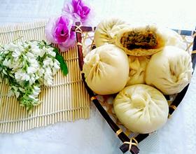 面粉放发酵粉,揉匀,面发酵好了包入肉馅