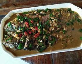 把鲫鱼倒进锅里。翻身放入盐酱油黄酒。翻身几次?放点糖。!等烧得差不多的时候,放点水。