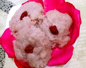 将酵母溶于月季花汁中,加白糖搅匀,再加粘米粉,加适量温水 搅匀成糊状
