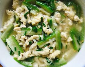 可以根据自己的口味加入蔬菜不一定非得用丝瓜。 蘑菇。西红柿。纯瘦肉 都可以制作水滑肉。宝宝也很喜欢吃呢 加生粉的话。量少一些。不然汤都被勾芡的稠糊了