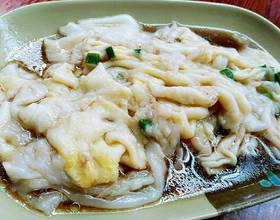 - 1. 准备半碗大米研磨制成的肠粉专用米粉(市场有卖),加入三勺清水,搅拌至无颗粒状,调匀