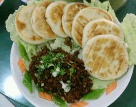 用刀开口放置抄好的肉末即可食用