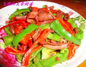 青红椒爆鸭肠的做法