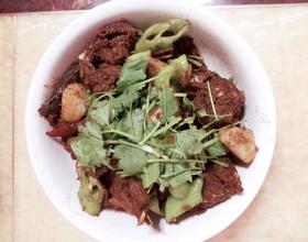 - 9. 然后把切好的青椒放入锅里翻炒几下,撒点香菜可以出锅了