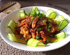 - 7. 拌好的鸡肉装到盘子中,撒上芝麻与葱花