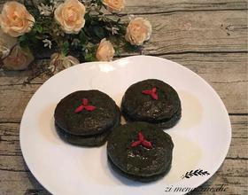 芽麦饼上淋上糖水,撒些芝麻,再放几颗枸杞装饰一下就完成了。