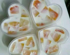 牛奶煮至吉利丁片融化、倒入喜欢的模具(没有模具可以用一次性杯子或者别的都行)