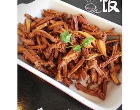 - 5. 当油温到7、8层热时加入拌好的杏鲍菇条