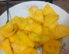 把切好的菠萝放盐水里泡个十分钟左右就好了(不要放太多盐不然太咸了不好吃)