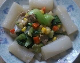 炒配料时可以加少许水焖煮几分钟,放入肠粉拌炒时,也可加盖焖煮2分钟,这样做肠粉不夹生。同时要注意火候,别炒焦了。