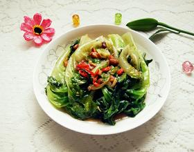 炒至生菜发软,放入黄豆酱和盐,鸡精,翻炒均匀,岀锅