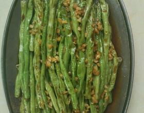 然后锅里放油,盐,鸡精,大蒜,鱼露,水,等煮开后,汤汁倒入长豆上面,然后再把长豆上面的汤汁,在倒回锅里煮开,煮开后又倒回长豆上面,那样长豆才有咸。