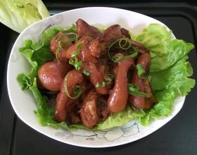 待猪脚软烂后,开盖转大火收汁,其间不能走开,已妨粘锅。