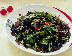 放木耳均匀搅拌,装盘洒些黑芝麻