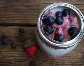 玻璃杯、燕麦、酸奶、各种水果(自己喜欢的就好) - 2. 把燕麦放进杯子里,同时放进去酸奶搅拌均匀,使燕麦被均匀吸收酸奶(稀一点的酸奶,牛奶也可以)