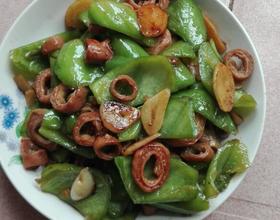 大肠1条用生粉搓洗几次,用开水反复烫干净。