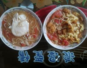 两种口味的番茄鸡蛋面这就做好啦!如果觉得摊的鸡蛋没味可以在搅拌的时候少放一点点盐,我还是比较喜欢水煮的鸡蛋,因为水煮的很营养