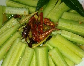 - 1. 黄瓜洗净,干红辣椒和姜也洗净备用