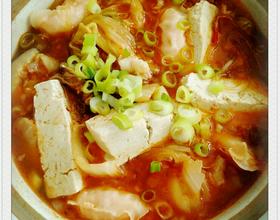 锅底倒油,将肥牛抄至断生,放入泡菜翻抄。倒入砂锅。
