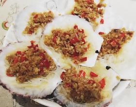 将爆油后的蒜蓉舀到每个扇贝和粉丝上。