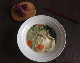 待荷包蛋定型加入面条煮熟,加入菠菜撒适量盐继续煮一到两分钟