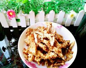 锅中加热加油~待油温上来时!一片一片的把蘑菇放入锅中炸