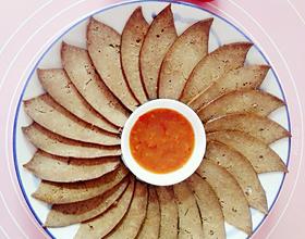 切好摆盘蘸蒜蓉酱就可以吃咯。