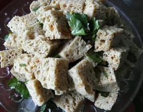 锅内烧水,烫一下面筋,面筋控干水份晾凉