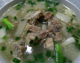 然后放如萝卜煮熟,最后放适量盐。起锅时在汤碗里放入大葱,把蒜瓣拍碎放入碗中加汤让味道融入到汤里面