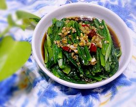 把蒜,辣椒段放入碗中。另起锅热油,油热后倒入碗中。再加入适量盐,一勺醋,一勺生抽,少许白糖兑成料汁!