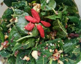 把香椿和花生核桃碎一起拌匀,加几滴香油